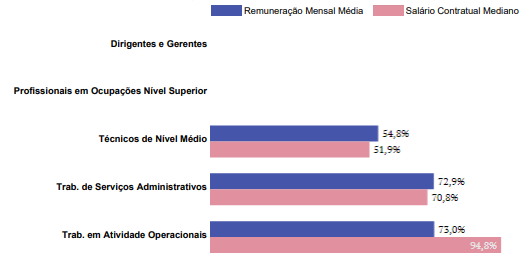Para cada grupo de ocupação que não apresenta cálculo da diferença, para salário de contratação ou para remuneração média, pode ter